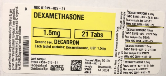 The following 6 images provide visual information about the product associated with Dexamethasone NDC 61919-827 by Direct Rx, such as packaging, labeling, and the appearance of the drug itself. This resource could be helpful for medical professionals, pharmacists, and patients seeking to verify medication information and ensure they have the correct product.