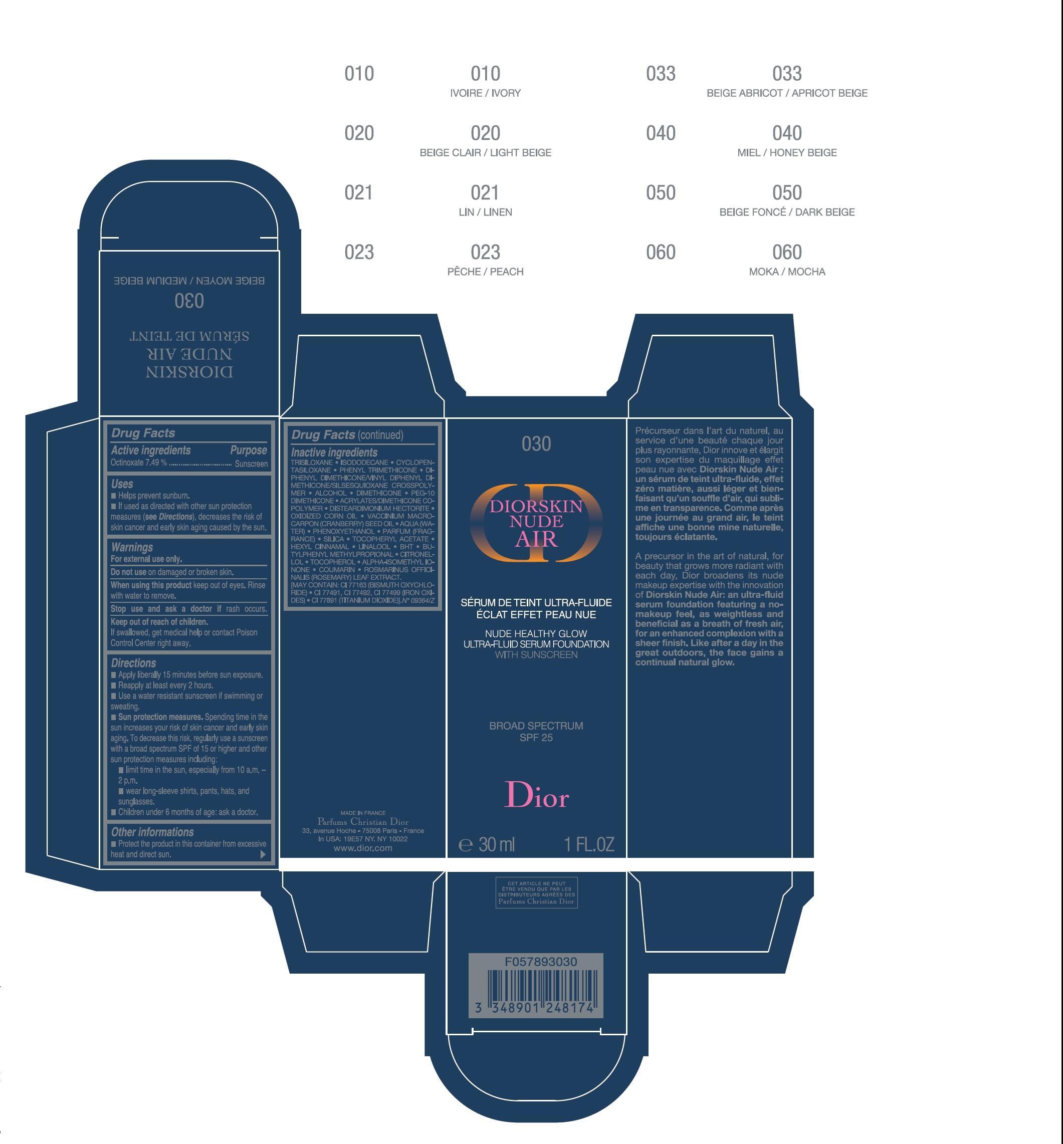 The following 2 images provide visual information about the product associated with Diorskin Nude Air Nude Healthy Glow Ultra-fluid Serum Foundation With Sunscreen Broad Spectrum Spf25 030 Medium NDC 61957-2124 by Parfums Christian Dior, such as packaging, labeling, and the appearance of the drug itself. This resource could be helpful for medical professionals, pharmacists, and patients seeking to verify medication information and ensure they have the correct product.