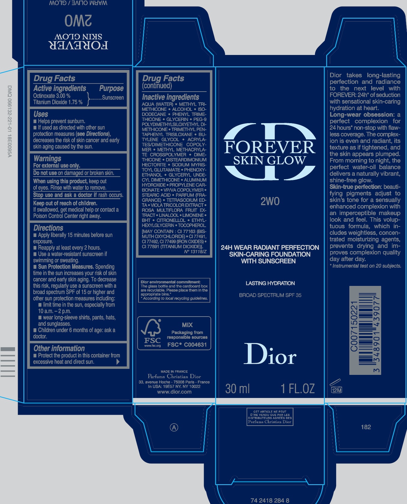 The following image provide visual information about the product associated with Forever Skin Glow 24h Wear Radiant Perfection Skin Caring Foundation With Sunscreen Broad Spectrum Spf 35 Lasting Hydration 2w0 NDC 61957-2920 by Parfums Christian Dior, such as packaging, labeling, and the appearance of the drug itself. This resource could be helpful for medical professionals, pharmacists, and patients seeking to verify medication information and ensure they have the correct product.