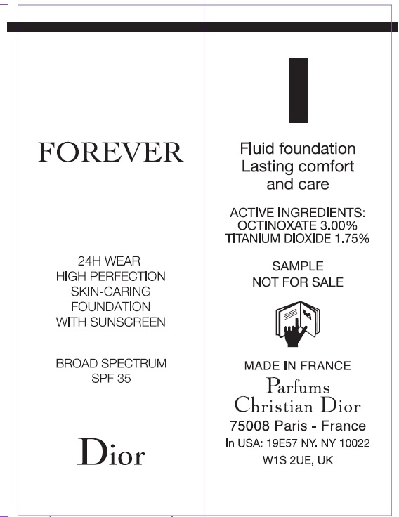 This is a description for a Dior liquid foundation that has a high level of coverage and long-lasting wear of 24 hours. The formula includes active ingredients like octinoxate and titanium dioxide that offer broad-spectrum sunscreen protection of SPF 35. It promises to be skin-caring and provide lasting comfort. The product is made in France and the sample is not for sale. However, the address of the manufacturer is available in Paris, France and New York, USA.*