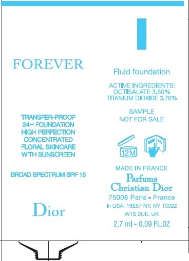 Forever is a fluid foundation with active ingredients such as GCTISALATE and TITANIUM DIOXIDE. This sample 24H foundation is transfer-proof, has high perfection and concentrated floral skincare with sunscreen, made in France. It comes with broad spectrum SPF 15 Park and is not for sale. The product is manufactured by Christian Dior and its volume is 2,7 ml-0.09 FLOZ.*