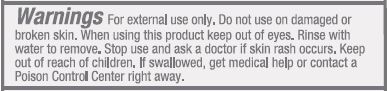 This is a warning label for a product meant for external use only. It advises not to use on damaged or broken skin and to avoid contact with eyes. In case of a skin rash, the use of the product must be discontinued, and medical advice should be sought. It also warns to keep the product out of reach of children and to seek immediate medical help in case of ingestion.*