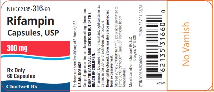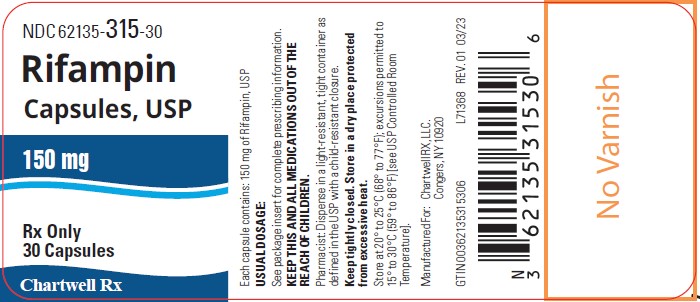 The following 3 images provide visual information about the product associated with Rifampin NDC 62135-315 by Chartwell Rx, Llc, such as packaging, labeling, and the appearance of the drug itself. This resource could be helpful for medical professionals, pharmacists, and patients seeking to verify medication information and ensure they have the correct product.