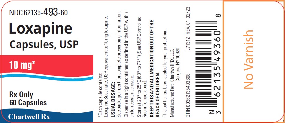 The following 3 images provide visual information about the product associated with Loxapine NDC 62135-493 by Chartwell Rx, Llc, such as packaging, labeling, and the appearance of the drug itself. This resource could be helpful for medical professionals, pharmacists, and patients seeking to verify medication information and ensure they have the correct product.