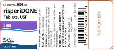 The following 7 images provide visual information about the product associated with Risperidone NDC 62135-604 by Chartwell Rx, Llc, such as packaging, labeling, and the appearance of the drug itself. This resource could be helpful for medical professionals, pharmacists, and patients seeking to verify medication information and ensure they have the correct product.