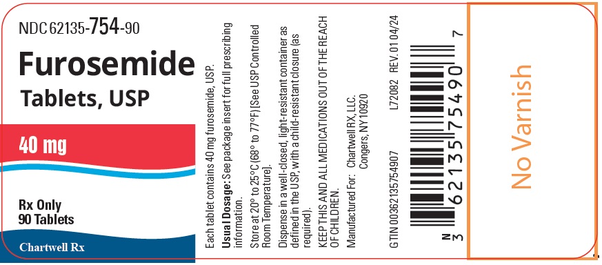 The following 3 images provide visual information about the product associated with Furosemide NDC 62135-753 by Chartwell Rx, Llc, such as packaging, labeling, and the appearance of the drug itself. This resource could be helpful for medical professionals, pharmacists, and patients seeking to verify medication information and ensure they have the correct product.