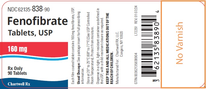 The following 3 images provide visual information about the product associated with Fenofibrate NDC 62135-837 by Chartwell Rx, Llc, such as packaging, labeling, and the appearance of the drug itself. This resource could be helpful for medical professionals, pharmacists, and patients seeking to verify medication information and ensure they have the correct product.