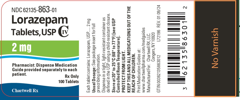 The following 4 images provide visual information about the product associated with Lorazepam NDC 62135-863 by Chartwell Rx, Llc, such as packaging, labeling, and the appearance of the drug itself. This resource could be helpful for medical professionals, pharmacists, and patients seeking to verify medication information and ensure they have the correct product.