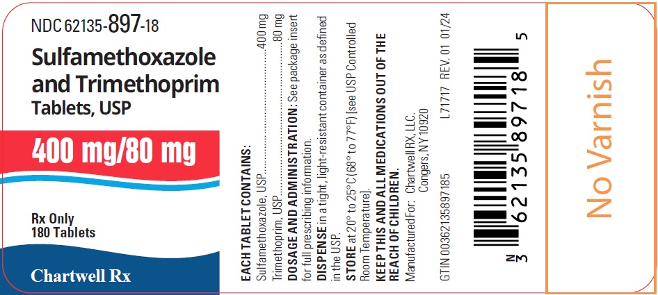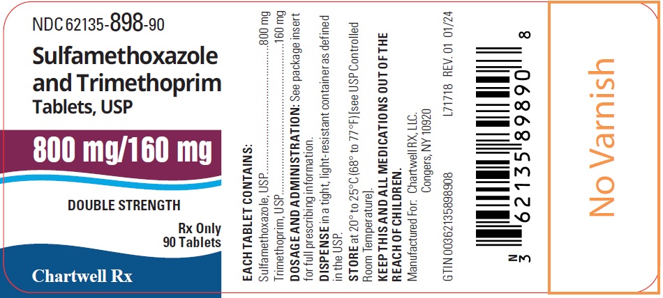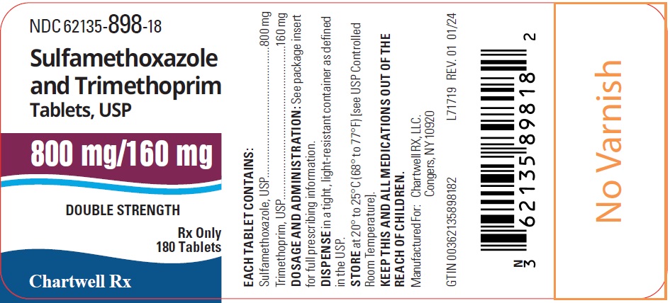 The following 6 images provide visual information about the product associated with Sulfamethoxazole And Trimethoprim NDC 62135-898 by Chartwell Rx, Llc, such as packaging, labeling, and the appearance of the drug itself. This resource could be helpful for medical professionals, pharmacists, and patients seeking to verify medication information and ensure they have the correct product.