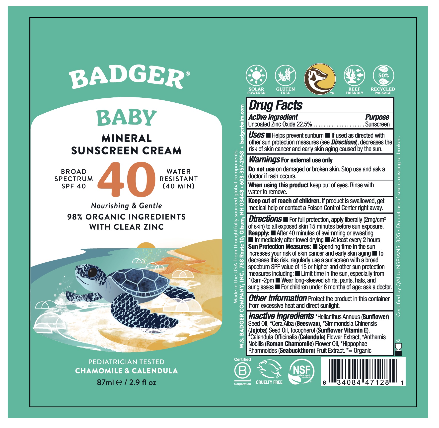 The following image provide visual information about the product associated with Badger Baby Sunscreen Cream Broad Spectrum Spf 40 NDC 62206-4011 by W.s. Badger Company, Inc., such as packaging, labeling, and the appearance of the drug itself. This resource could be helpful for medical professionals, pharmacists, and patients seeking to verify medication information and ensure they have the correct product.