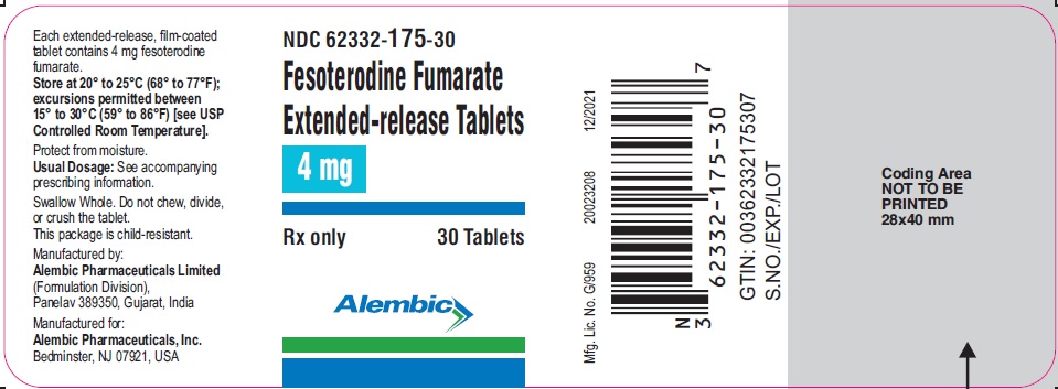 NDC 62332-175-30 bottle of 30 tablets with child resistant closure
