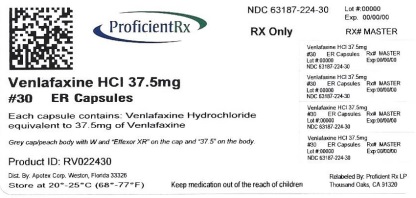 NDC 63187-224-90, bottle of 90 capsules in unit-of-use package. 150 mg, dark orange cap and body with "" and "Effexor XR" on the cap and "150" on the body.