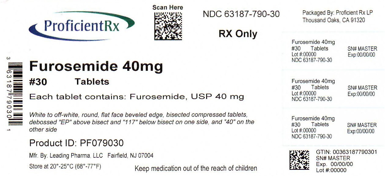 FUROSEMIDE TABLETS 40 mg are supplied as white, round, scored tablets in Bottles of 30 (NDC 63187-790-30) 60 (NDC 63187-790-60) and 90 (63187-790-90). The 40 mg tablets are imprinted with "EP 117" on one side and "40" on the other.