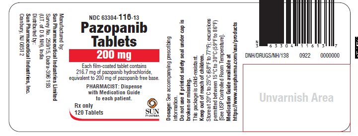 The following 5 images provide visual information about the product associated with Pazopanib NDC 63304-116 by Sun Pharmaceutical Industries, Inc., such as packaging, labeling, and the appearance of the drug itself. This resource could be helpful for medical professionals, pharmacists, and patients seeking to verify medication information and ensure they have the correct product.