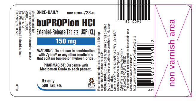 The following 4 images provide visual information about the product associated with Bupropion Hydrochloride NDC 63304-723 by Sun Pharmaceutical Industries, Inc., such as packaging, labeling, and the appearance of the drug itself. This resource could be helpful for medical professionals, pharmacists, and patients seeking to verify medication information and ensure they have the correct product.