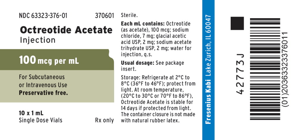 Octreotide Acetate is a sterile injection used for subcutaneous or intravenous use that contains Octreotide acetate, sodium chloride, glacial acetic acid USP, sodium acetate trihydrate USP, phenol USP, and water for injection. It is available in a multiple dose vial and each mL of the medicine contains 200 mcg of Octreotide. The usage and storage information is provided in the package insert. The NDC (National Drug Code) for this product is 63323-378-05 and the product code is 4022296. The LOT/EXP number is also provided.*
