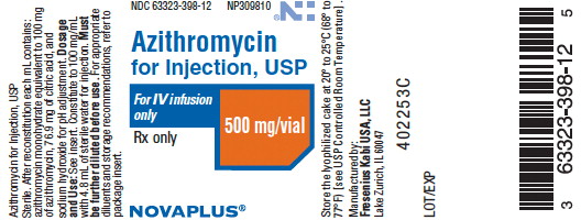 The following 4 images provide visual information about the product associated with Azithromycin NDC 63323-398 by Fresenius Kabi Usa, Llc, such as packaging, labeling, and the appearance of the drug itself. This resource could be helpful for medical professionals, pharmacists, and patients seeking to verify medication information and ensure they have the correct product.