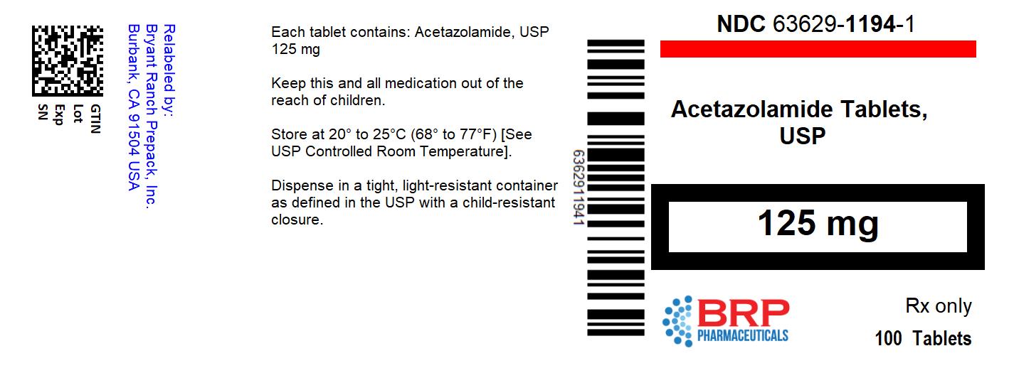The following 2 images provide visual information about the product associated with Acetazolamide NDC 63629-1194 by Bryant Ranch Prepack, such as packaging, labeling, and the appearance of the drug itself. This resource could be helpful for medical professionals, pharmacists, and patients seeking to verify medication information and ensure they have the correct product.