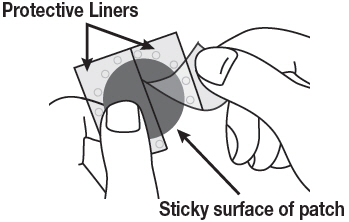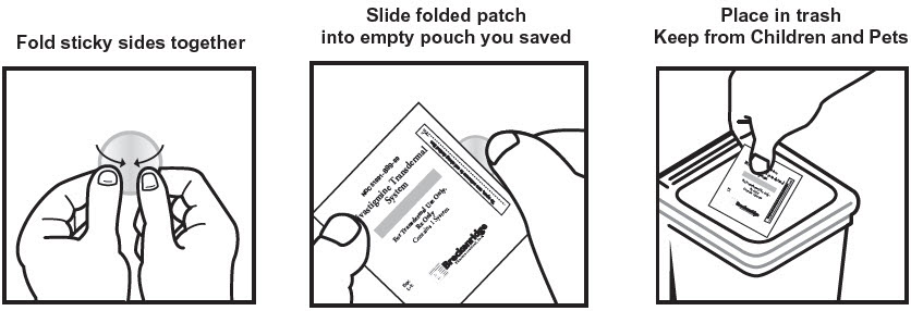 This text appears to be instructions for disposing of a folded patch. It is recommended to fold the sticky sides together and place the patch in the trash. Additionally, it suggests keeping the folded patch away from children and pets.*