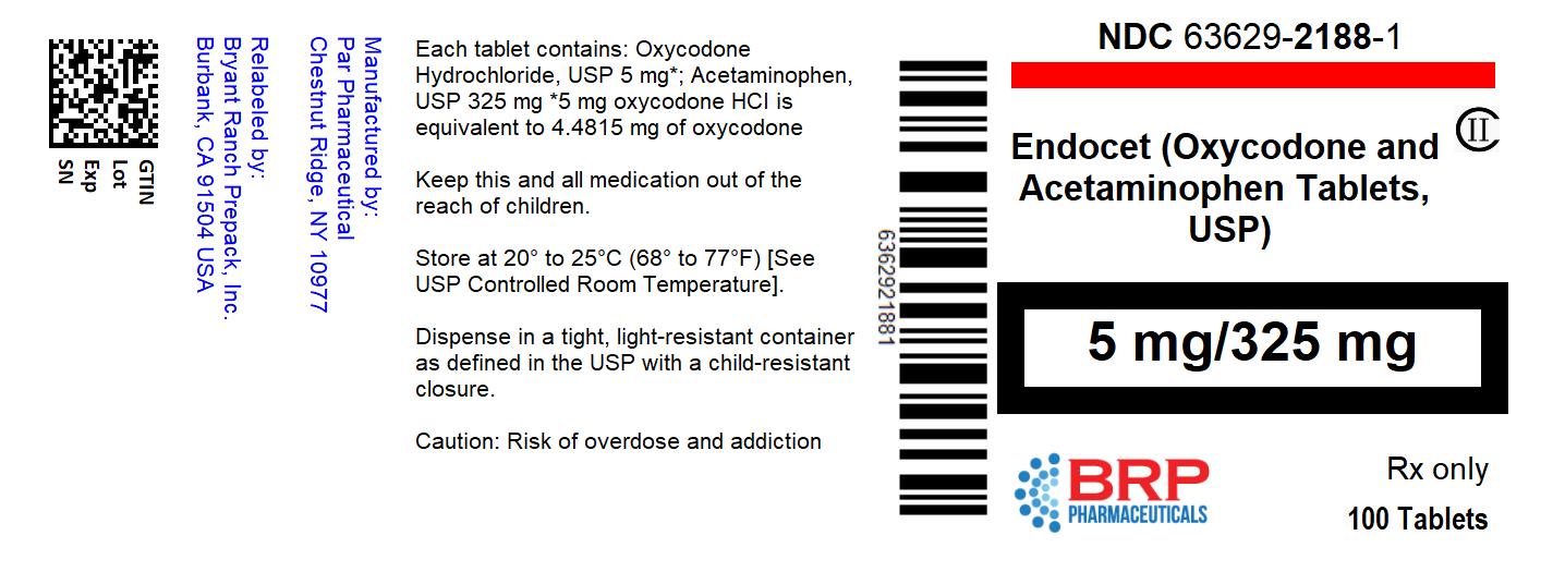 The following 3 images provide visual information about the product associated with Endocet NDC 63629-2188 by Bryant Ranch Prepack, such as packaging, labeling, and the appearance of the drug itself. This resource could be helpful for medical professionals, pharmacists, and patients seeking to verify medication information and ensure they have the correct product.