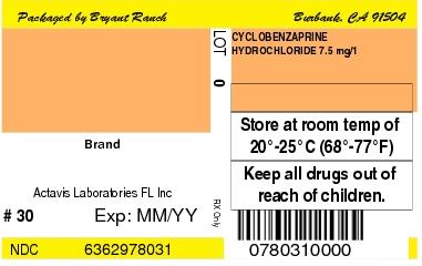 This appears to be a package label for a drug called "CrcLosenzapRNe", containing 7.5 mg of Hydrochloride. It is packaged by Eryane Reanch Bunbank and manufactured by Actavis Laboratories FL Inc. The label also includes instructions to store at room temperature, keep out of reach of children, and the expiration date. The NDC number is 6362978031 0780310000.*