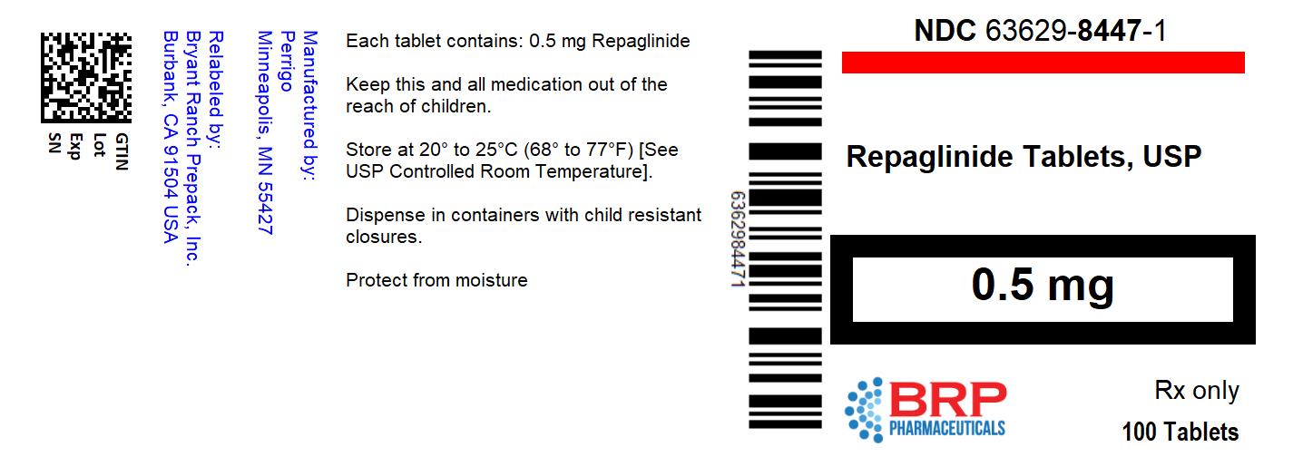 The following 3 images provide visual information about the product associated with Repaglinide NDC 63629-8447 by Bryant Ranch Prepack, such as packaging, labeling, and the appearance of the drug itself. This resource could be helpful for medical professionals, pharmacists, and patients seeking to verify medication information and ensure they have the correct product.