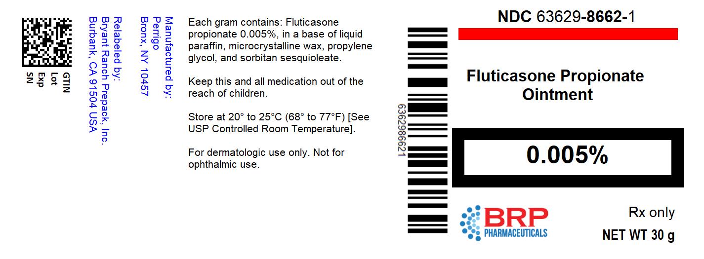 The following 2 images provide visual information about the product associated with Fluticasone Propionate NDC 63629-8662 by Bryant Ranch Prepack, such as packaging, labeling, and the appearance of the drug itself. This resource could be helpful for medical professionals, pharmacists, and patients seeking to verify medication information and ensure they have the correct product.