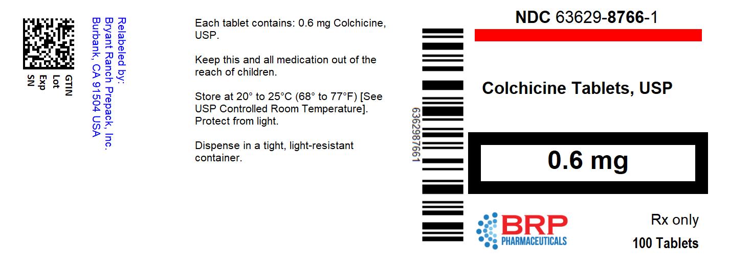 The following 3 images provide visual information about the product associated with Colchicine NDC 63629-8766 by Bryant Ranch Prepack, such as packaging, labeling, and the appearance of the drug itself. This resource could be helpful for medical professionals, pharmacists, and patients seeking to verify medication information and ensure they have the correct product.