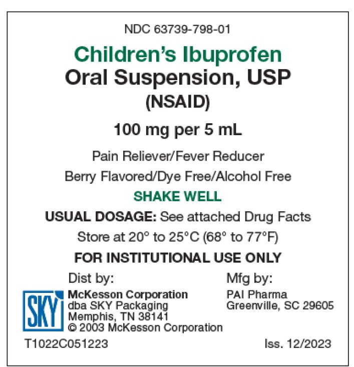 The following 2 images provide visual information about the product associated with Childrens Ibuprofen Oral Suspension NDC 63739-798 by Mckesson Corporation Dba Sky Packaging, such as packaging, labeling, and the appearance of the drug itself. This resource could be helpful for medical professionals, pharmacists, and patients seeking to verify medication information and ensure they have the correct product.