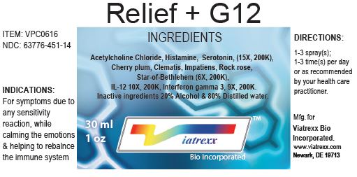 The following 2 images provide visual information about the product associated with Relief Plus G12 NDC 63776-451 by Viatrexx Bio Incorporated, such as packaging, labeling, and the appearance of the drug itself. This resource could be helpful for medical professionals, pharmacists, and patients seeking to verify medication information and ensure they have the correct product.