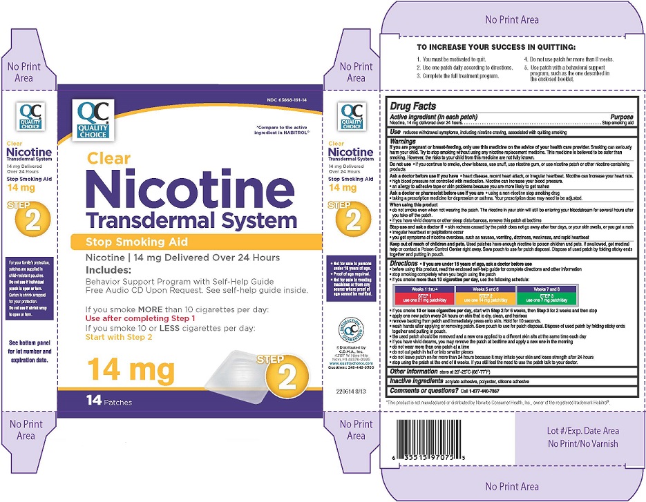 The following 3 images provide visual information about the product associated with Nicotine Transdermal System Step 1 NDC 63868-190 by Chain Drug Marketing Association Inc., such as packaging, labeling, and the appearance of the drug itself. This resource could be helpful for medical professionals, pharmacists, and patients seeking to verify medication information and ensure they have the correct product.