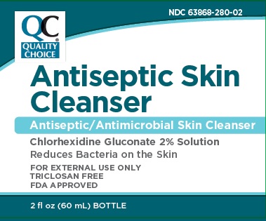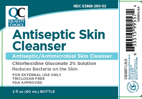 The following 11 images provide visual information about the product associated with Antiseptic Skin Cleanser Exidine-2 Chg NDC 63868-280 by Quality Choice, such as packaging, labeling, and the appearance of the drug itself. This resource could be helpful for medical professionals, pharmacists, and patients seeking to verify medication information and ensure they have the correct product.