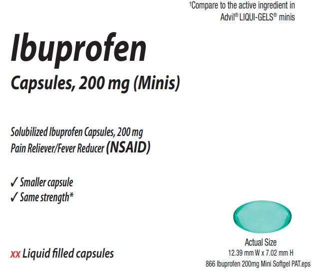 Solubilized ibuprofen equal to 200 mg ibuprofen (NSAID)* (present as the free acid and potassium salt) *nonsteroidal anti-inflammatory drug - ibuprofen 200 mg mini softgel pat 1