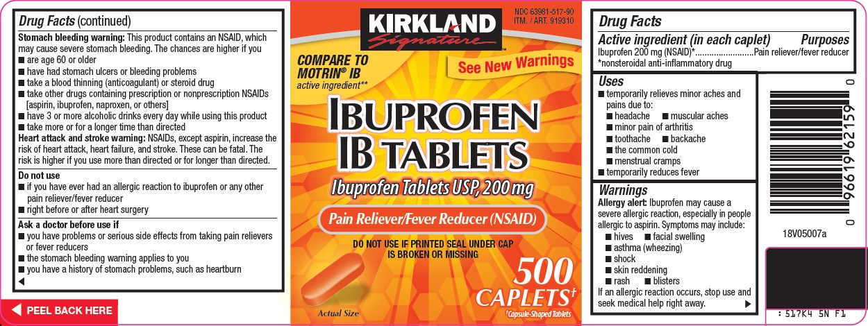 The following 2 images provide visual information about the product associated with Kirkland Signature Ibuprofen Ib NDC 63981-517 by Costco Wholesale Company, such as packaging, labeling, and the appearance of the drug itself. This resource could be helpful for medical professionals, pharmacists, and patients seeking to verify medication information and ensure they have the correct product.