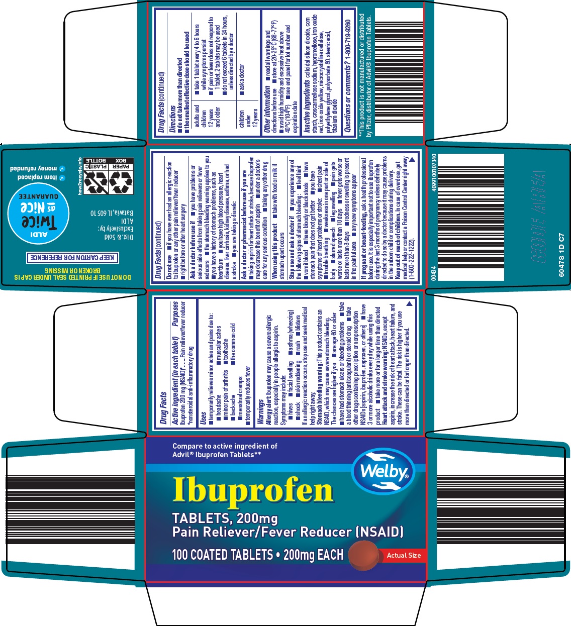 The following image provide visual information about the product associated with Welby Ibuprofen NDC 64024-002 by Aldi, Inc, such as packaging, labeling, and the appearance of the drug itself. This resource could be helpful for medical professionals, pharmacists, and patients seeking to verify medication information and ensure they have the correct product.