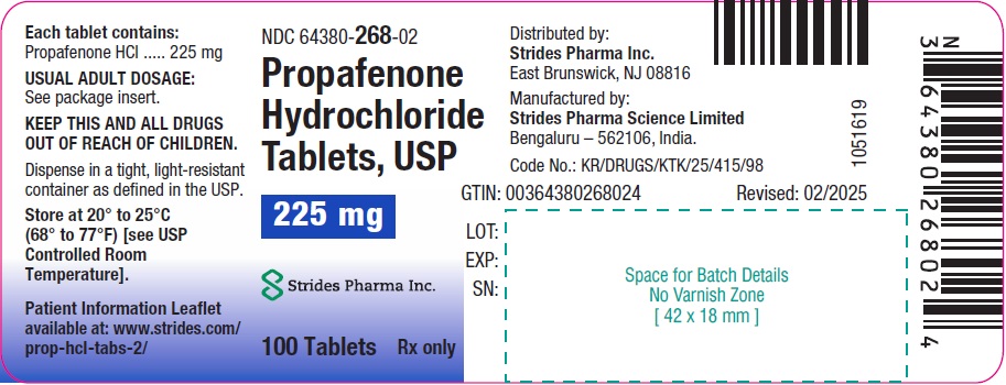 Each tablet contains 225 mg of Propafenone HCI. The usual adult dosage should be referred to the package insert. Remember to keep this medication out of reach of children and store it in a tight, light-resistant container within the recommended temperature range. This medication is distributed by Strides Pharma Inc. in East Brunswick, NJ and manufactured by Strides Pharma Science Limited in Bengaluru, India.*
