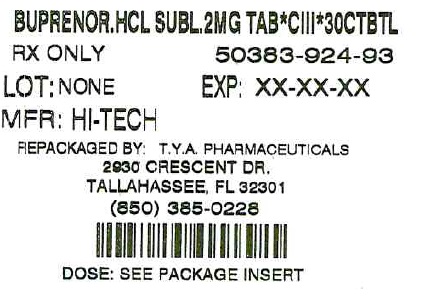 Buprenorphine Hydrochloride Sublingual Tablets are a prescription medication packaged with 30 tablets per bottle. This medication contains a controlled substance under the Schedule III. It is manufactured by Hi-Tech and packed by T.Y.A. Pharmaceuticals. The package insert should be referred to for the dosage information.*