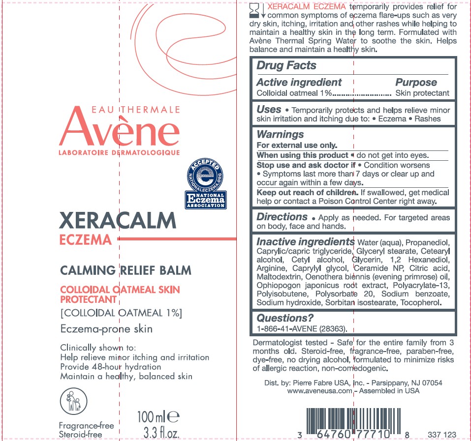 This is a description of XERACALM ECZEMA CALMING RELIEF BALM by Laboratoire Dermatologique. It is a fragrance-free, steroid-free, and paraben-free skin protectant containing 1% colloidal oatmeal. Clinically shown to relieve minor itching and irritation, provide 48-hour hydration, and maintain healthy, balanced skin for eczema-prone skin. It contains Avène Thermal Spring Water to soothe the skin. Suitable for the entire family from 3 months old, it is dermatologist-tested and formulated to minimize risks of allergic reactions. For external use only, it temporarily protects and helps relieve skin irritation and itching due to eczema and rashes. Apply as needed on targeted areas of the body, face, and hands. For further information or questions, you can contact 1-866-41-AVENE.*