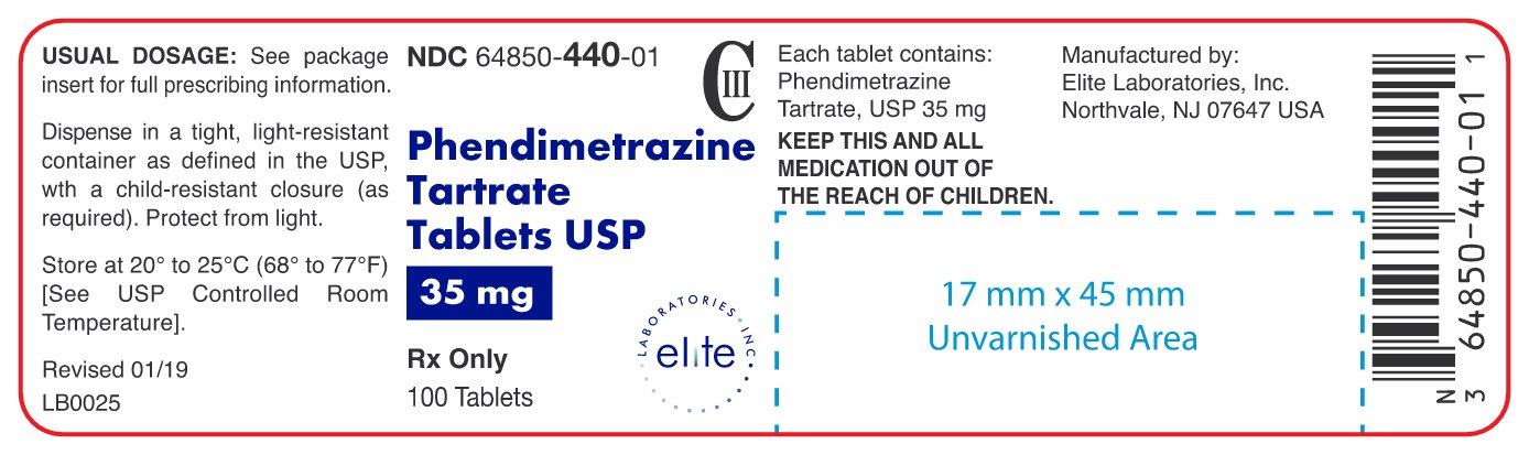 The following 3 images provide visual information about the product associated with Phendimetrazine Tartrate NDC 64850-440 by Elite Laboratories, Inc, such as packaging, labeling, and the appearance of the drug itself. This resource could be helpful for medical professionals, pharmacists, and patients seeking to verify medication information and ensure they have the correct product.