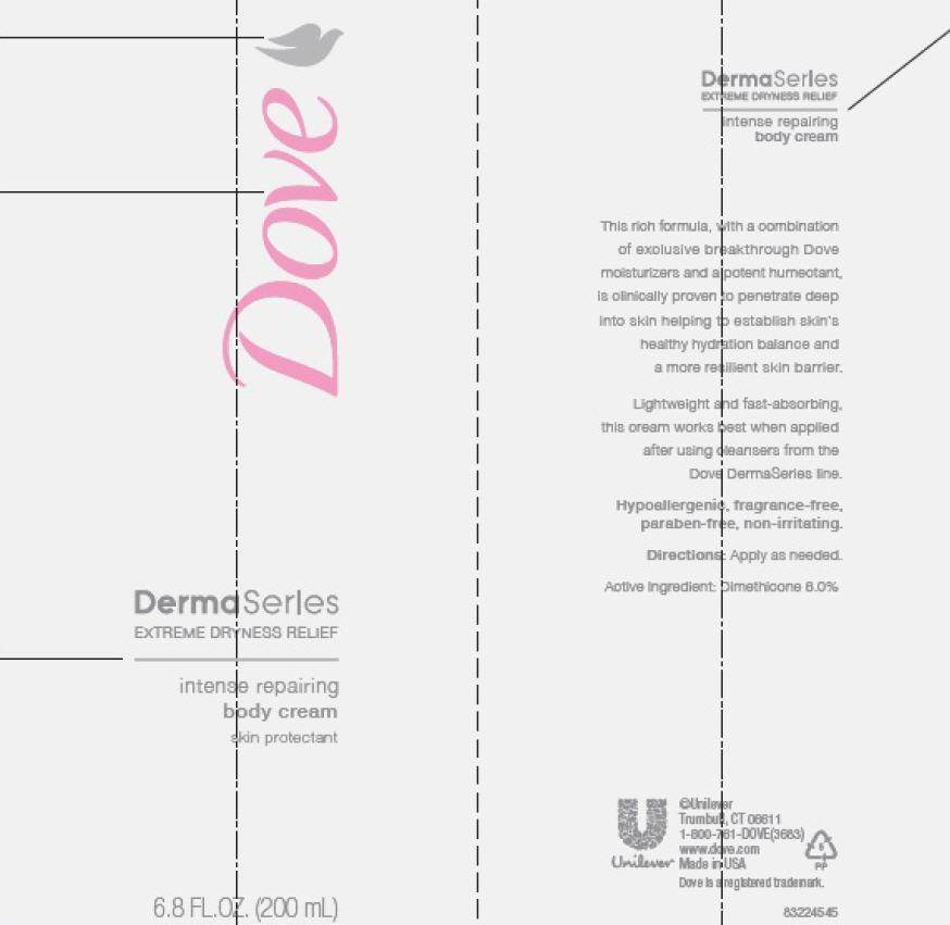 Dove Dermaseries Intense Repairing Body Cream Product Label