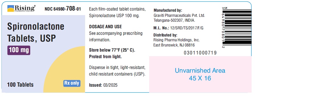 The following 6 images provide visual information about the product associated with Spironolactone NDC 64980-707 by Rising Pharma Holdings, Inc., such as packaging, labeling, and the appearance of the drug itself. This resource could be helpful for medical professionals, pharmacists, and patients seeking to verify medication information and ensure they have the correct product.