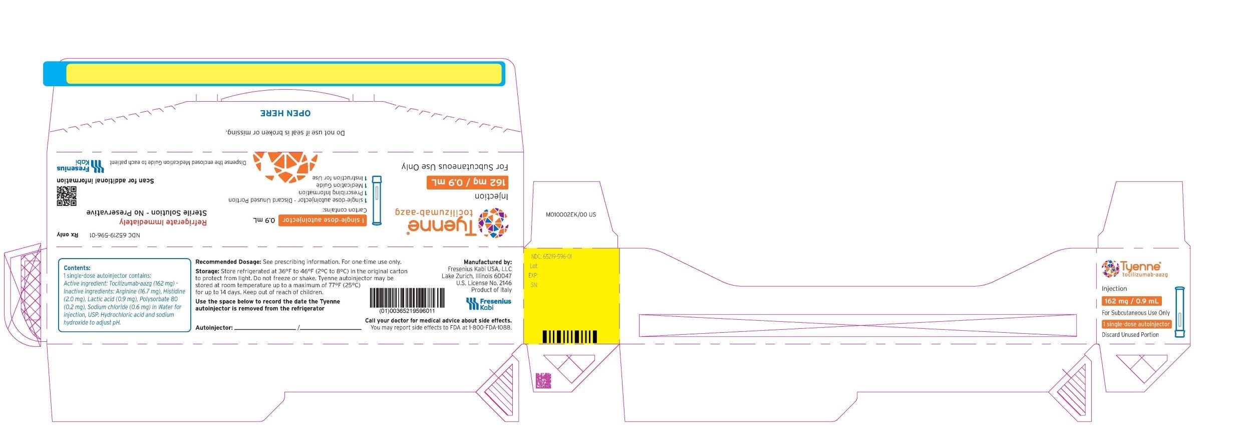 This is a prescription medication with the National Drug Code (NDC) 65219-596-01. It is an injection containing 162 mg for subcutaneous use only. Manufactured by Fresenius Kabi USA, LLC, with US License No. 2146.*