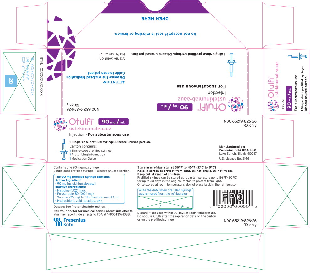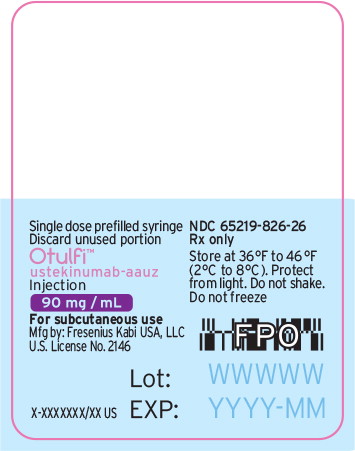 Single dose prefilled syringe with NDC 65219-826-26 is designed for subcutaneous use. The syringe should be stored at a cold temperature range of 36°F to 46°F to maintain its integrity. Users are advised to protect the injection from light and avoid shaking the syringe before use. The lot number and expiration date are mentioned on the packaging for reference.*