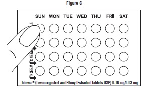 This is a description of a medication called Iclevia™ which is a combination of levonorgestrel and ethinyl estradiol in tablet form. It comes in three extended-cycle wallets, each containing 91 tablets, with 84 white tablets containing 0.15mg levonorgestrel USP and 0.03mg ethinyl estradiol USP and seven green inert tablets. It is used to prevent pregnancy when taken in the prescribed daily doses for 91 consecutive days. It does not protect against sexually transmitted diseases such as HIV. The medication should be stored at room temperature, between 20°C to 25°C. The medication is distributed by Aurobindo Pharma USA, Inc.*