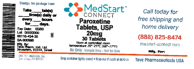 The following 3 images provide visual information about the product associated with Paroxetine NDC 66116-434 by Medvantx, Inc., such as packaging, labeling, and the appearance of the drug itself. This resource could be helpful for medical professionals, pharmacists, and patients seeking to verify medication information and ensure they have the correct product.