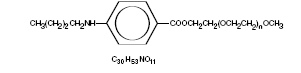 Benzonatate, a non-narcotic oral antitussive agent, is 2, 5, 8, 11, 14, 17, 20, 23, 26-nonaoxaoctacosan-28-yl p(butylamino) benzoate; with a molecular weight of 603.7.