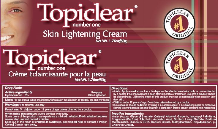 The following image provide visual information about the product associated with Topiclear Skin Lightening NDC 66129-010 by International Beauty Exchange, such as packaging, labeling, and the appearance of the drug itself. This resource could be helpful for medical professionals, pharmacists, and patients seeking to verify medication information and ensure they have the correct product.