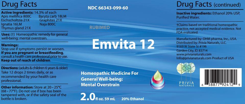 The following 2 images provide visual information about the product associated with Emvita 12 NDC 66343-099 by Rubimed Ag, such as packaging, labeling, and the appearance of the drug itself. This resource could be helpful for medical professionals, pharmacists, and patients seeking to verify medication information and ensure they have the correct product.