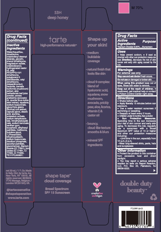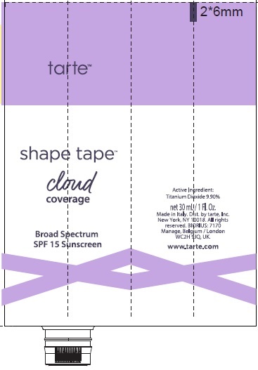 This appears to be a product label or packaging for "Shapé Tape" which may be a kind of cosmetic or beauty product. It claims to have "cloud i" and "coverage ety" features, but without context it's not clear what these mean. The product also boasts "Broad Spectrum SPF 15 Symscrean" which could be a sun protection feature.*