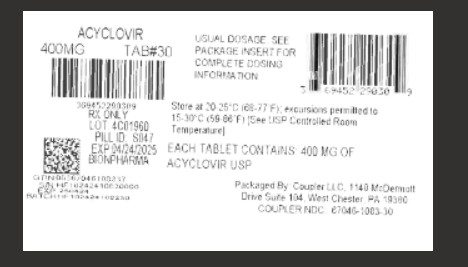 Each 400-mg tablet of acyclovir contains 400mg of acyclovir and the inactive ingredients magnesium stearate, microcrystalline cellulose, povidone and sodium starch glycolate.